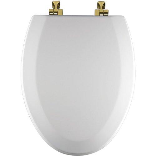 Bemis 1544BR000 Molded Wood Elongated Toilet Seat With Brass Hinges, White Feature